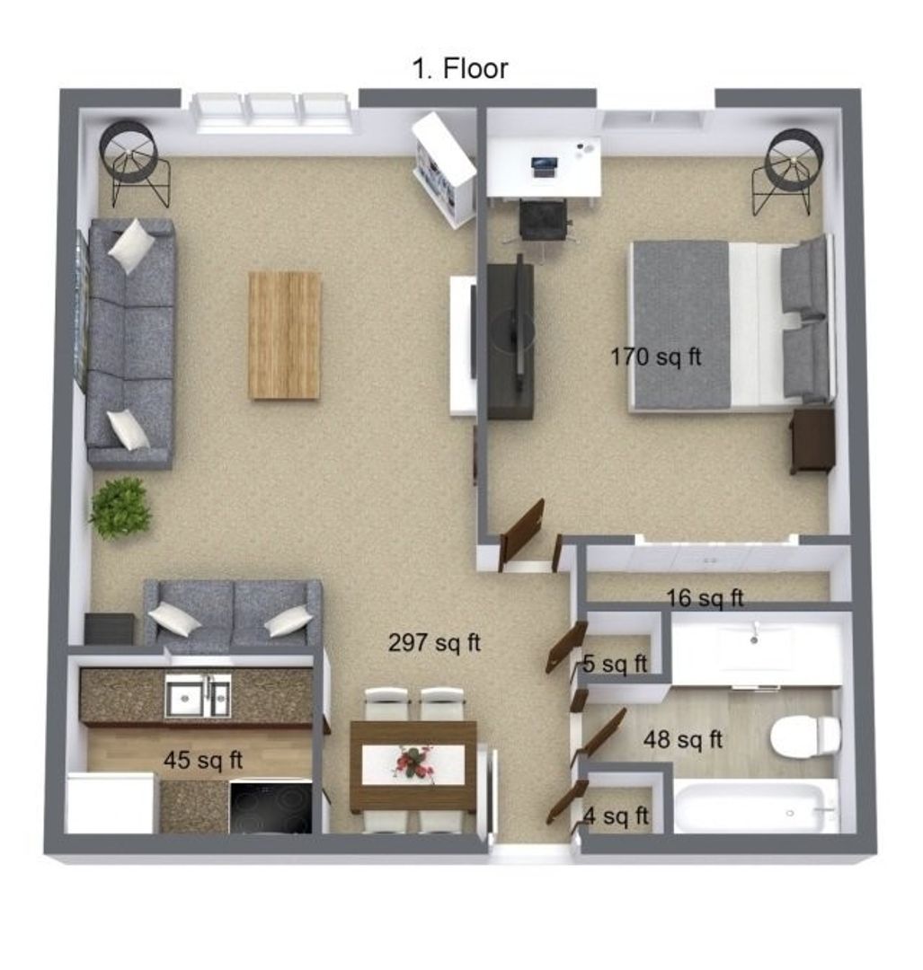 1 bedroom/ 1 bath
